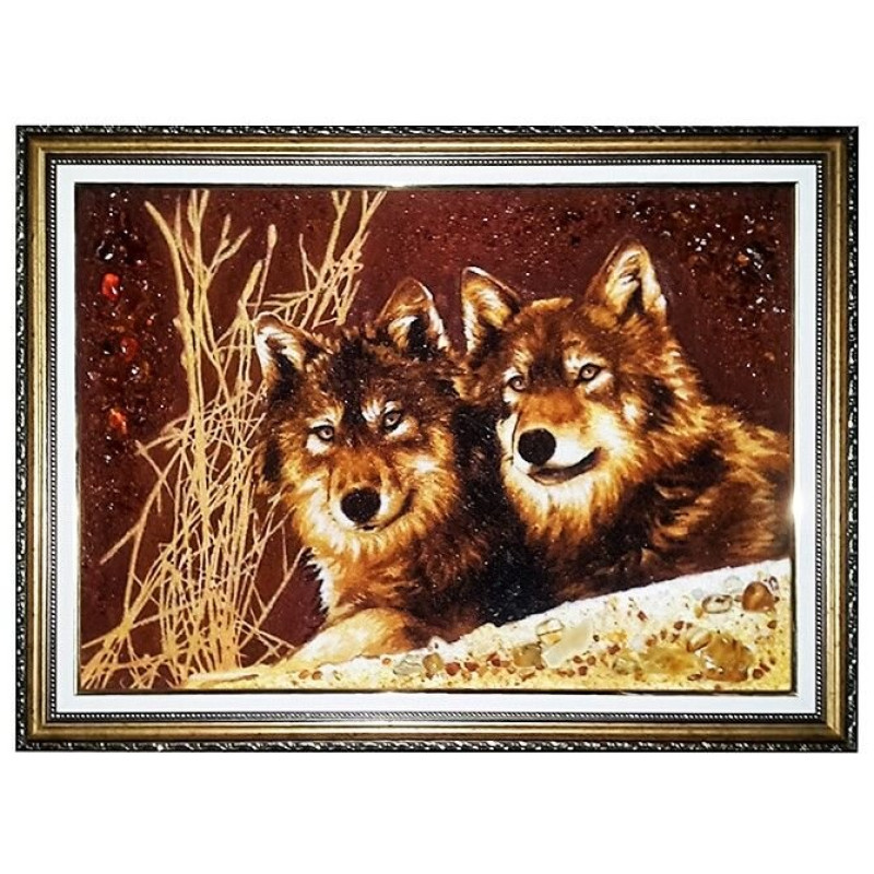 Пара вовків (він і вона) символізує сімейне благополуччя і сприяє зустрічі зі своєю другою половинкою, а в цілому зображення вовків це символ спритності, сили, витривалості. Бурштинове панно "Вовки" прекрасно доповнить і впишеться в інтер'єр. Так само панно може стати дорогим подарунком.