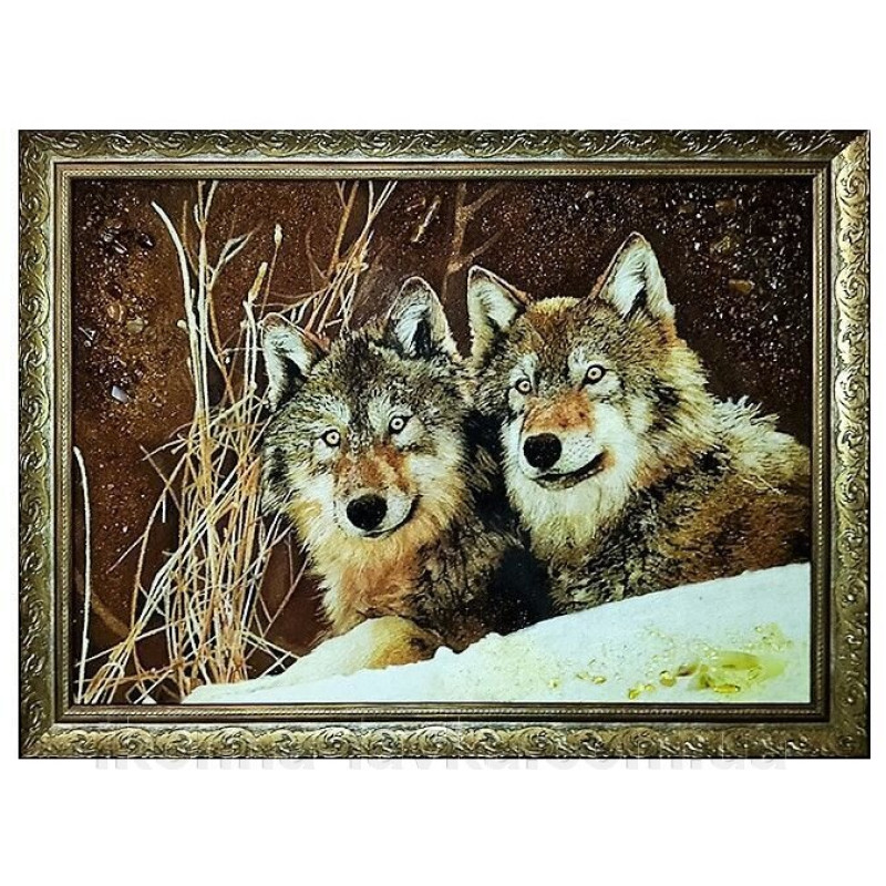 Картина з бурштину "Вовки" 20x30