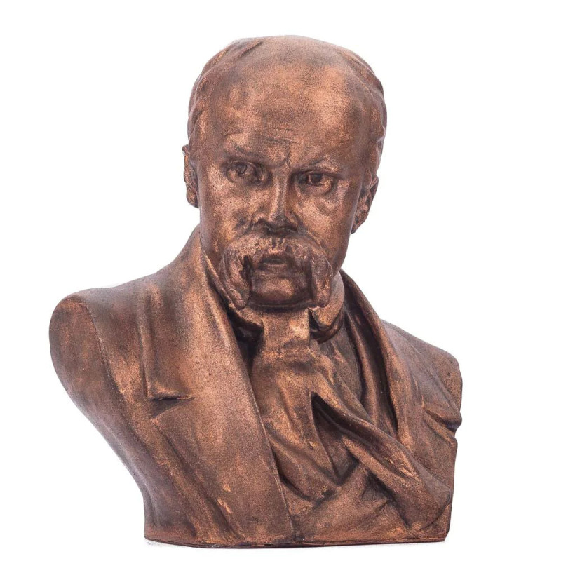 Настольный бюст Тараса Шевченко – это изысканная декоративная скульптура, олицетворяющая величие и дух украинского поэта, художника и национального пророка. Изделие выполнено из высококачественного гипса, что обеспечивает четкость и детализацию каждой черты портрета. Скульптура покрыта бронзовым цветом, что придает ей благородный вид, похожий на настоящую бронзу.
