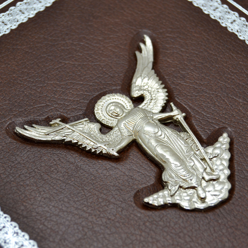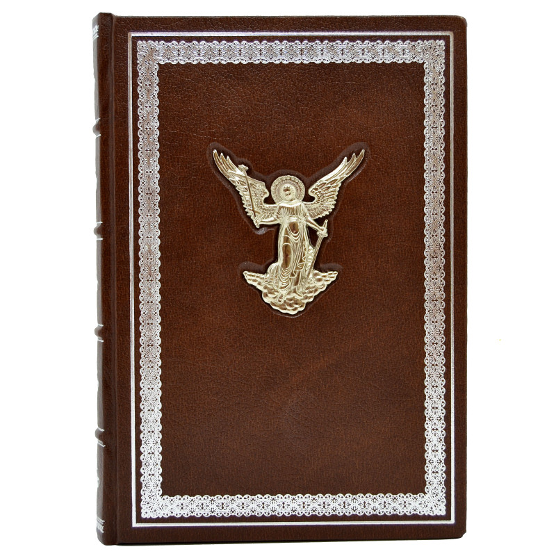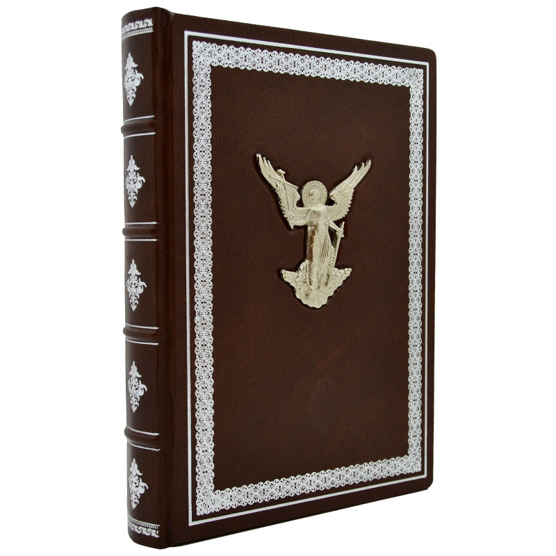 Ежедневник "Ангел Хранитель" оформлен в переплет из натуральной высококачественной кожи ручной работы. Лицевая сторона блокнота украшена красивой медной накладкой, которая покрыта серебром, а также, по всему периметру, ежедневник украшен тиснением. С боковой части ежедневника есть золотой срез.