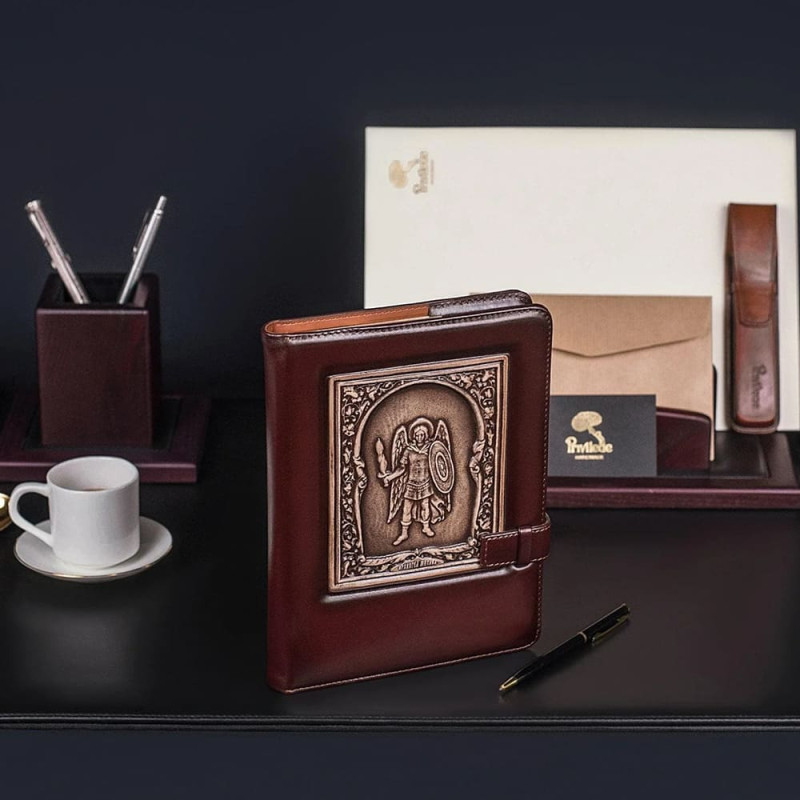 Ежедневник кожаный "Архангел Михаил" винный
