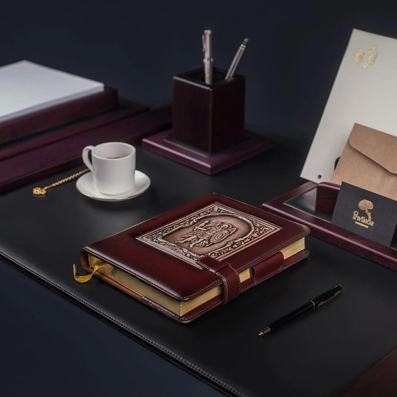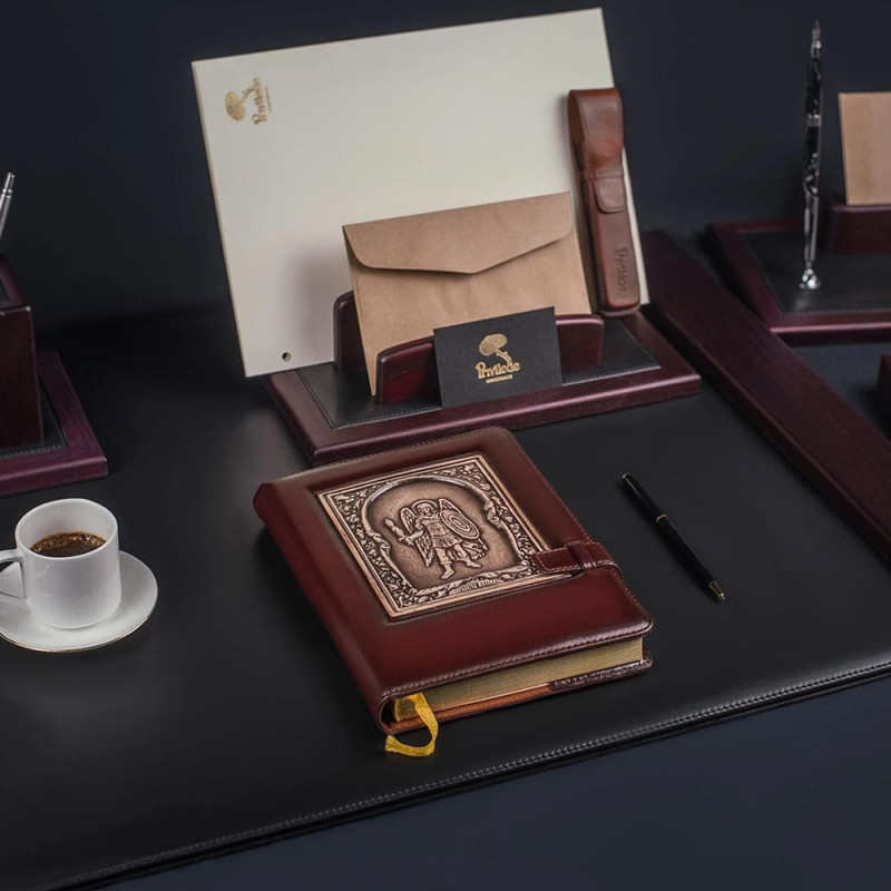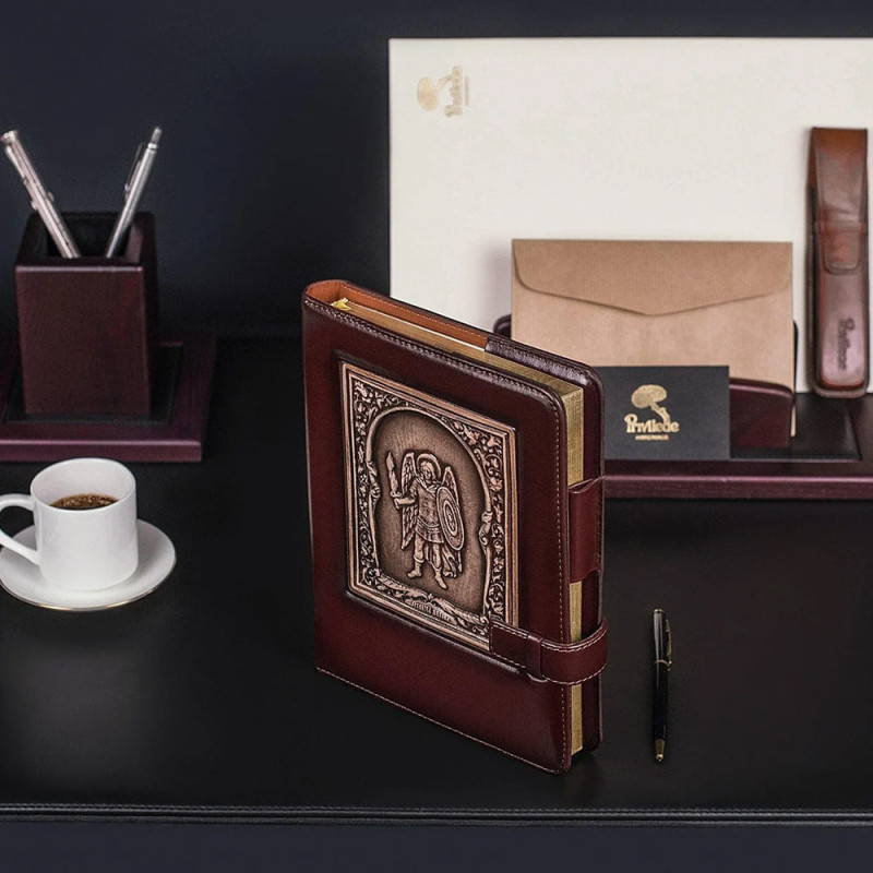 Кроме того, благодаря своей прочной кожаной обложке с тиснением изображения Архангела Михаила, этот ежедневник выглядит очень стильно и может стать отличным подарком для любого человека, который ценит красоту и практичность.