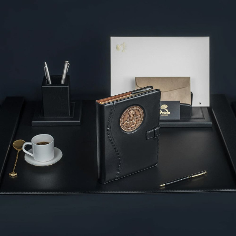 Ежедневник с кожаной обложкой и тиснением, изображающим князя Владимира - это отличный выбор для тех, кто ценит качество и стиль. Этот ежедневник имеет уникальный дизайн, который не оставит равнодушным ни одного покупателя.