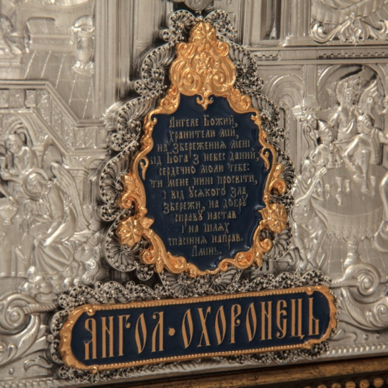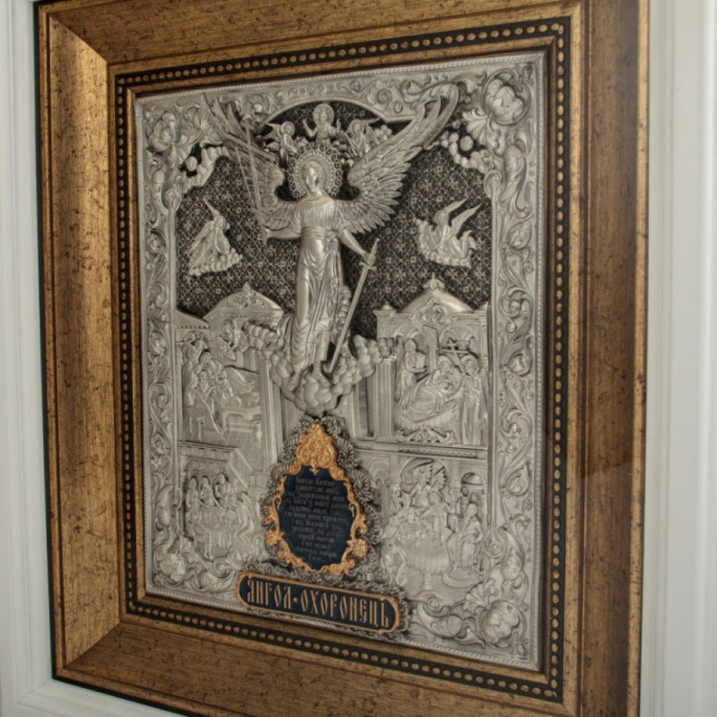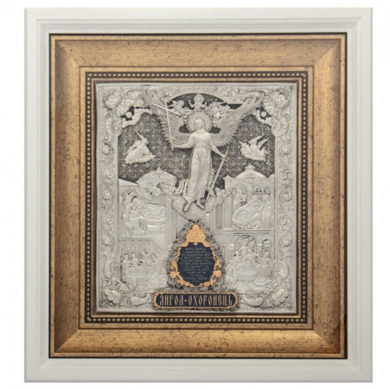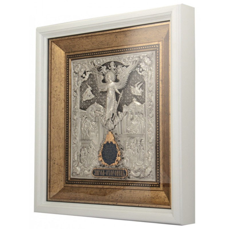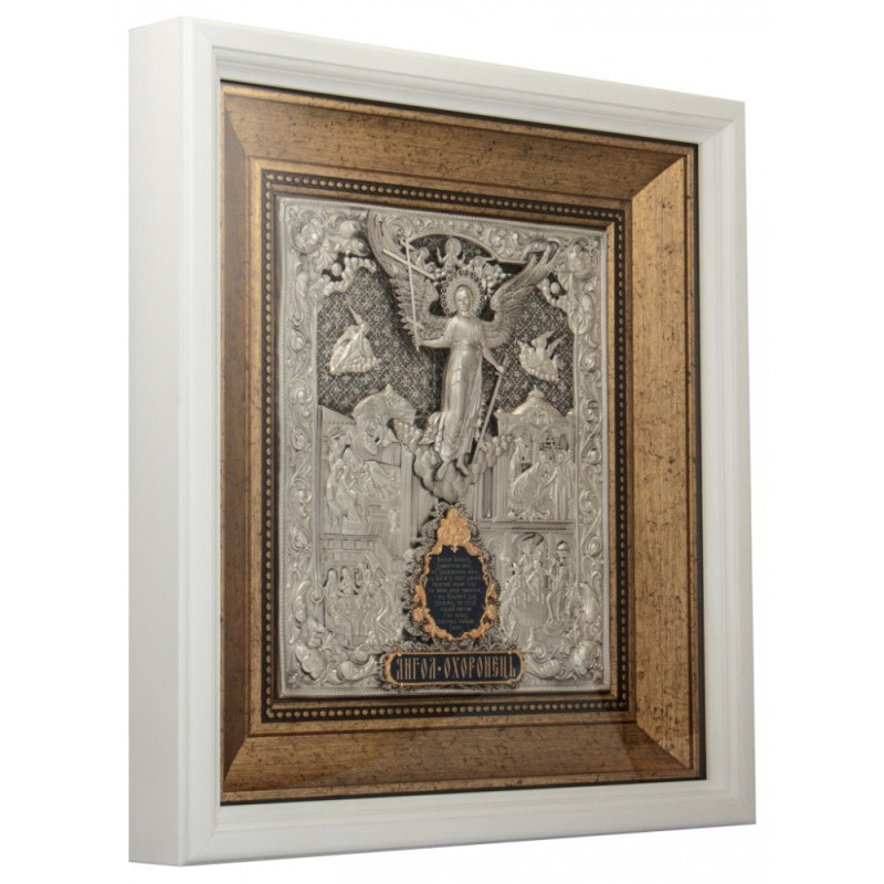 Икона "Ангел Хранитель" серебряная с белой рамой