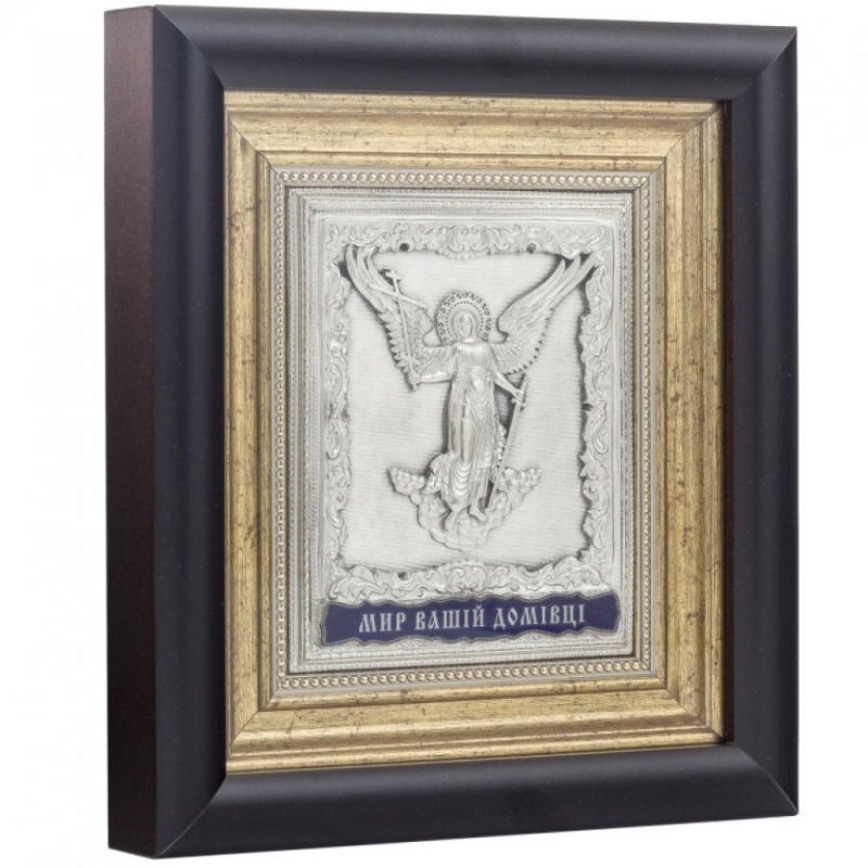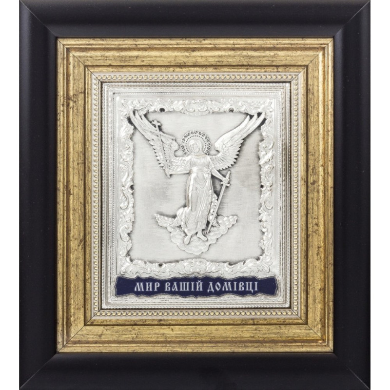 Серебряная икона Ангела Хранителя "Мир вашему дому"