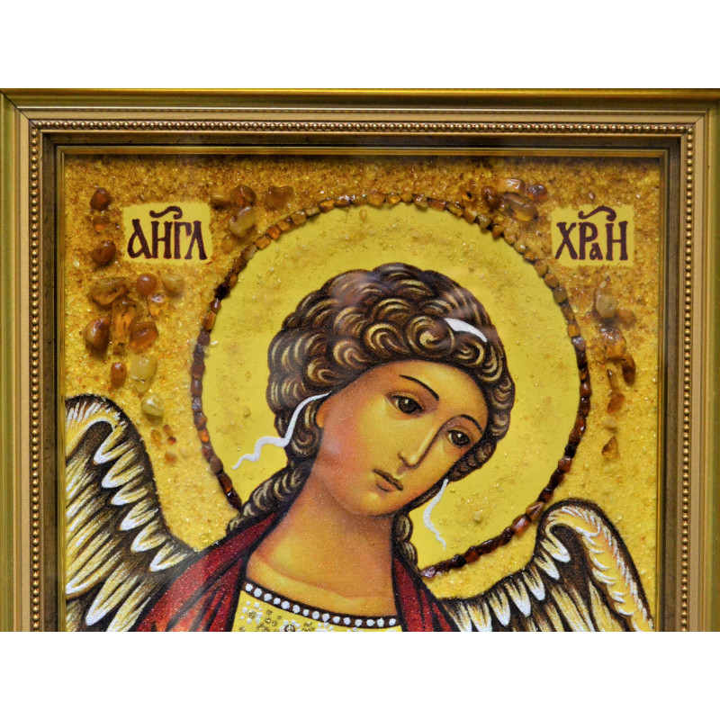 Данная икона выполнена профессиональным мастером насыпной и наборной техникой с применением янтарной крошки и драгоценных камней разных размеров. Янтарная икона оформлена в багет на ваш выбор, а также по желанию, икону возможно осуществить под стеклом.