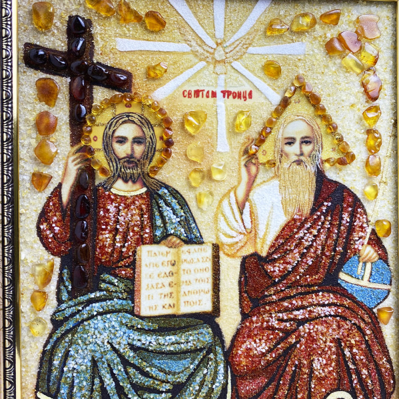 Икона из янтаря "Новозаветная Троица" 15x20