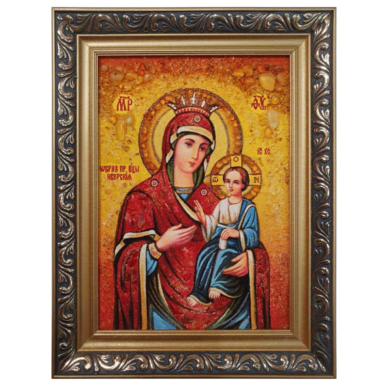 Икона из янтаря "Пресвятая Богородица Иверская" 15x20