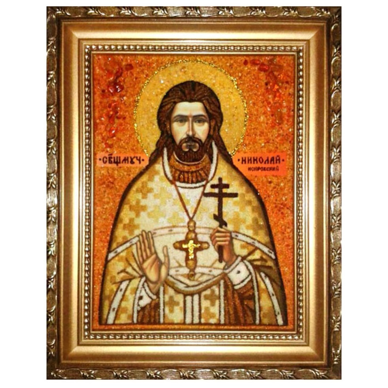 Икона из янтаря "Священномученик Николай Искровский" 15x20