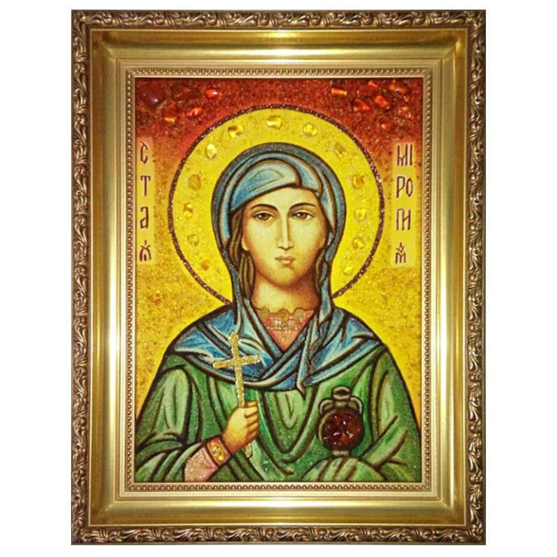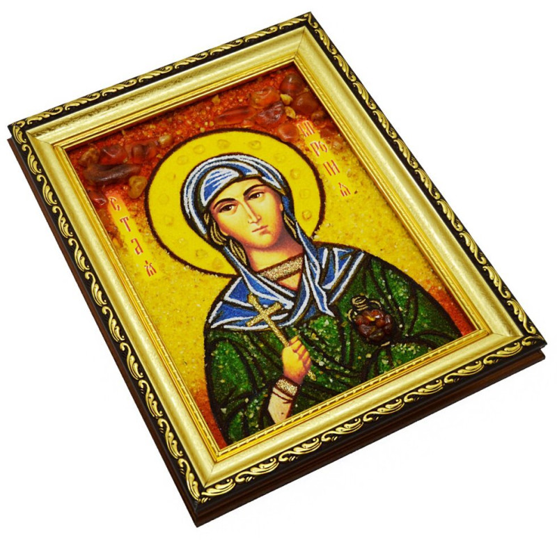 Икона из янтаря "Святая Миропия Хиосская" 15x20