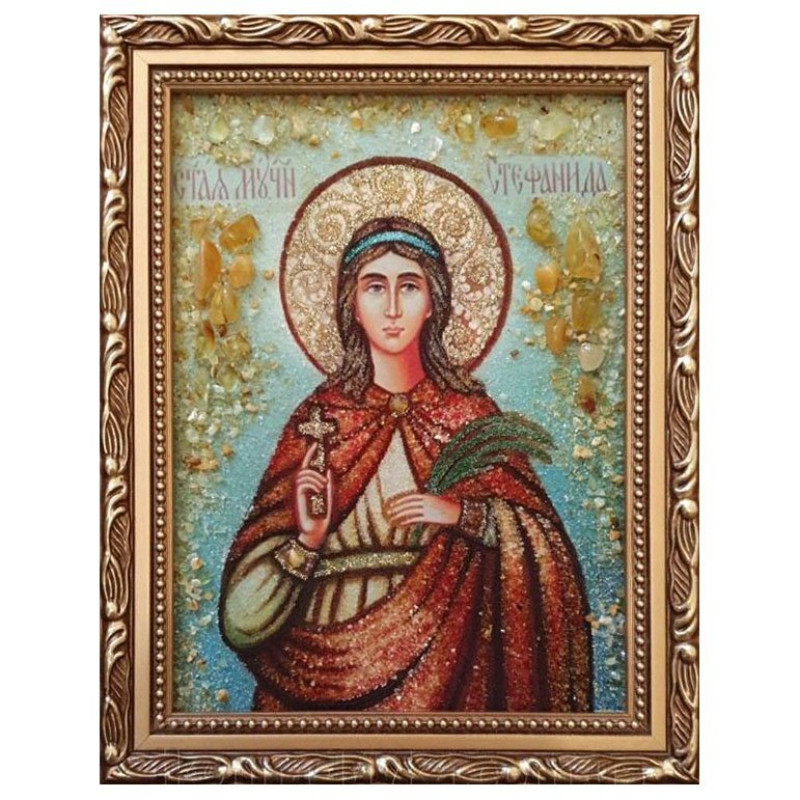 Икона из янтаря "Святая мученица Стефания (Стефанида)" 20x30