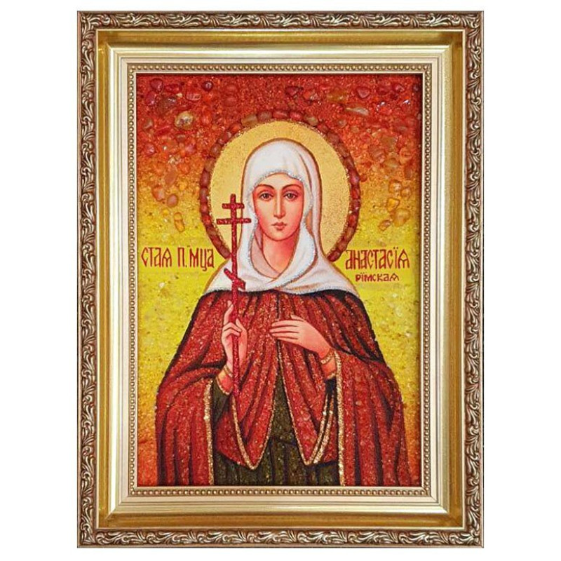 Икона из янтаря "Святая преподобномученица Анастасия Римская" 15x20