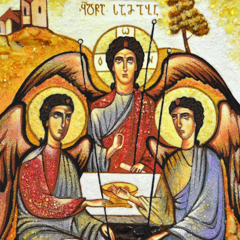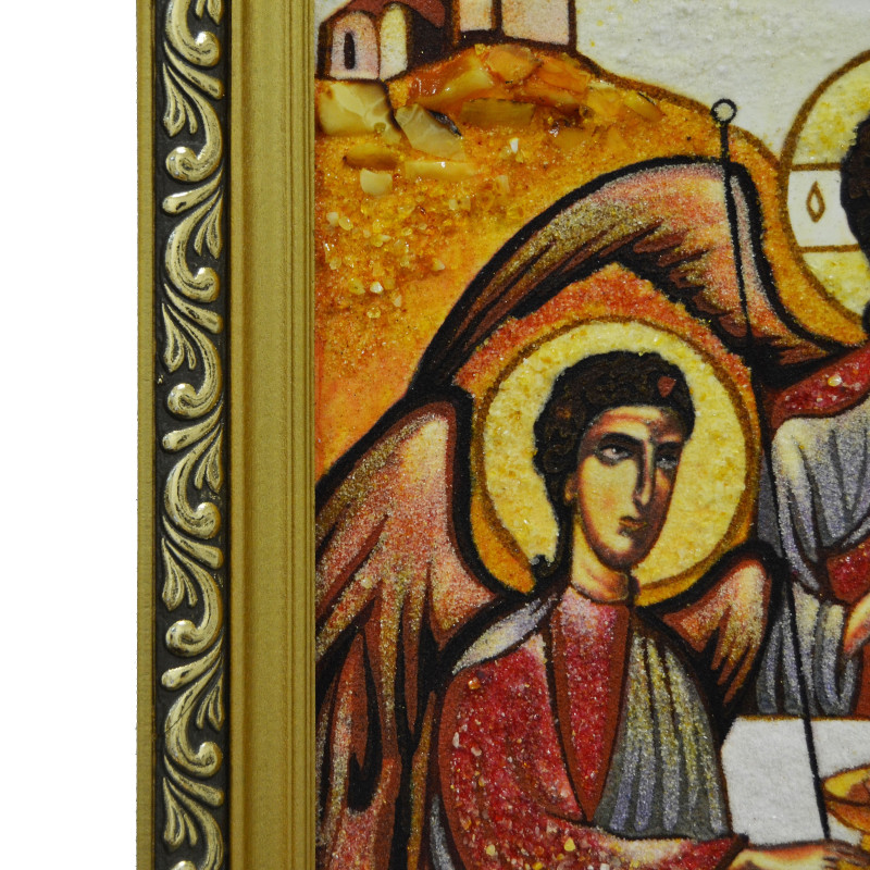 Икона из янтаря "Святая Троица" копия грузинской иконы Л. Кинцурашвили 15x20