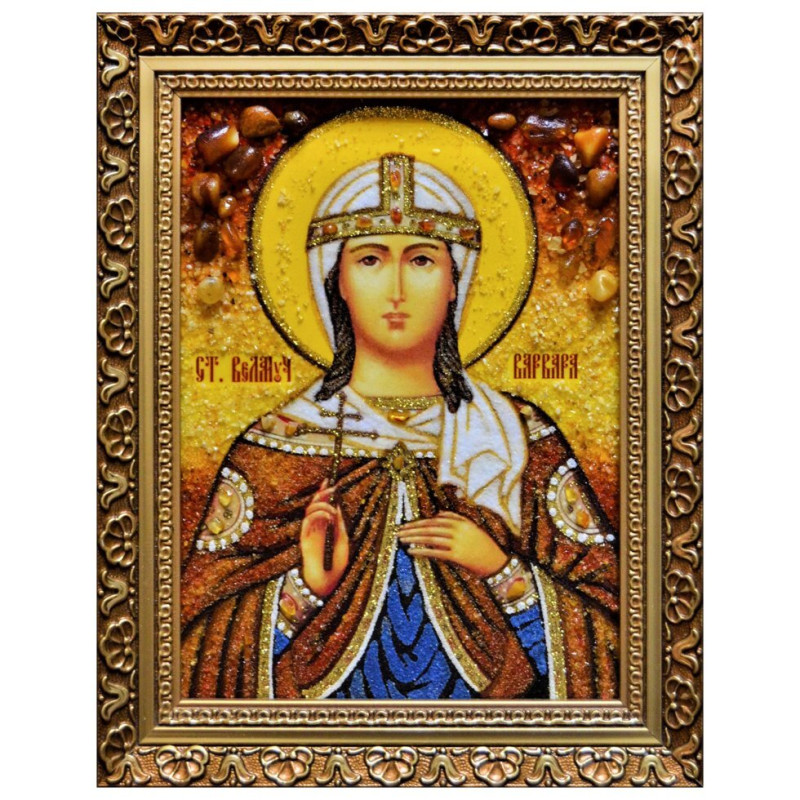 Икона из янтаря "Святая Варвара" 15x20