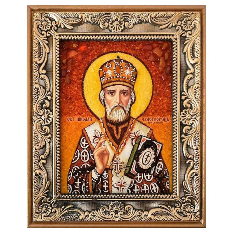 Икона из янтаря "Святитель Николай" 15x20