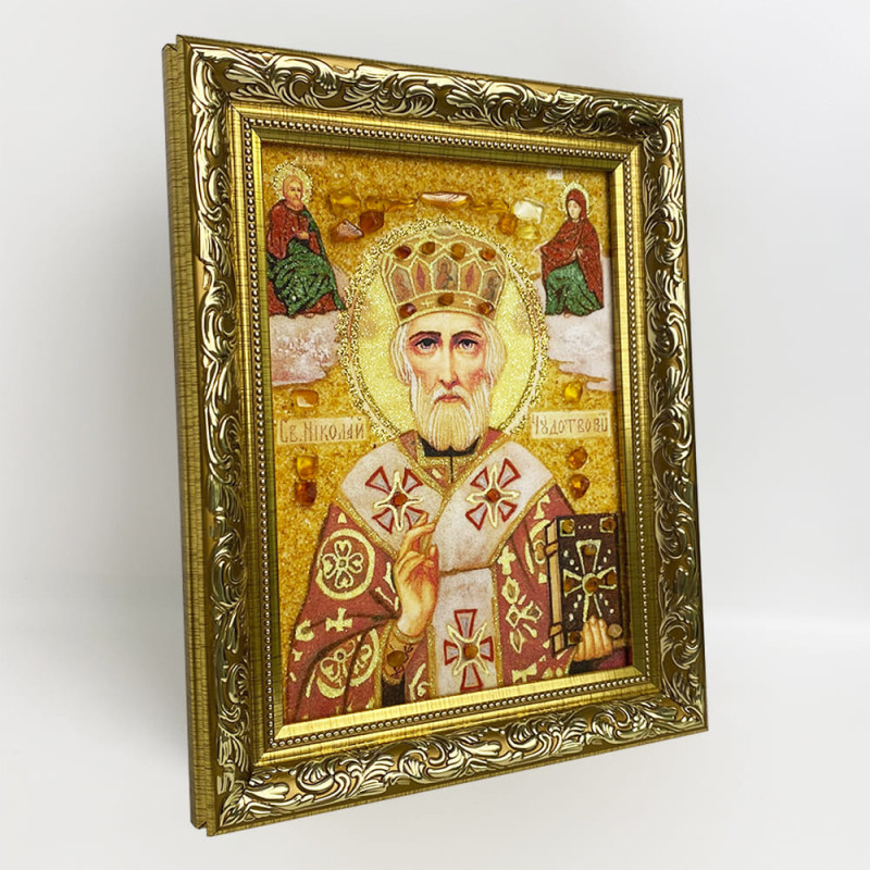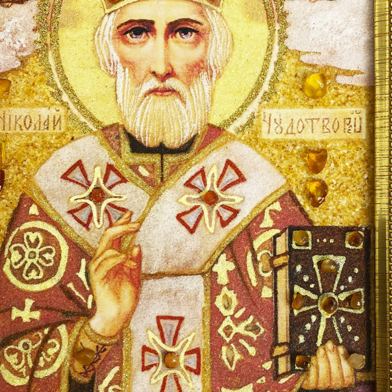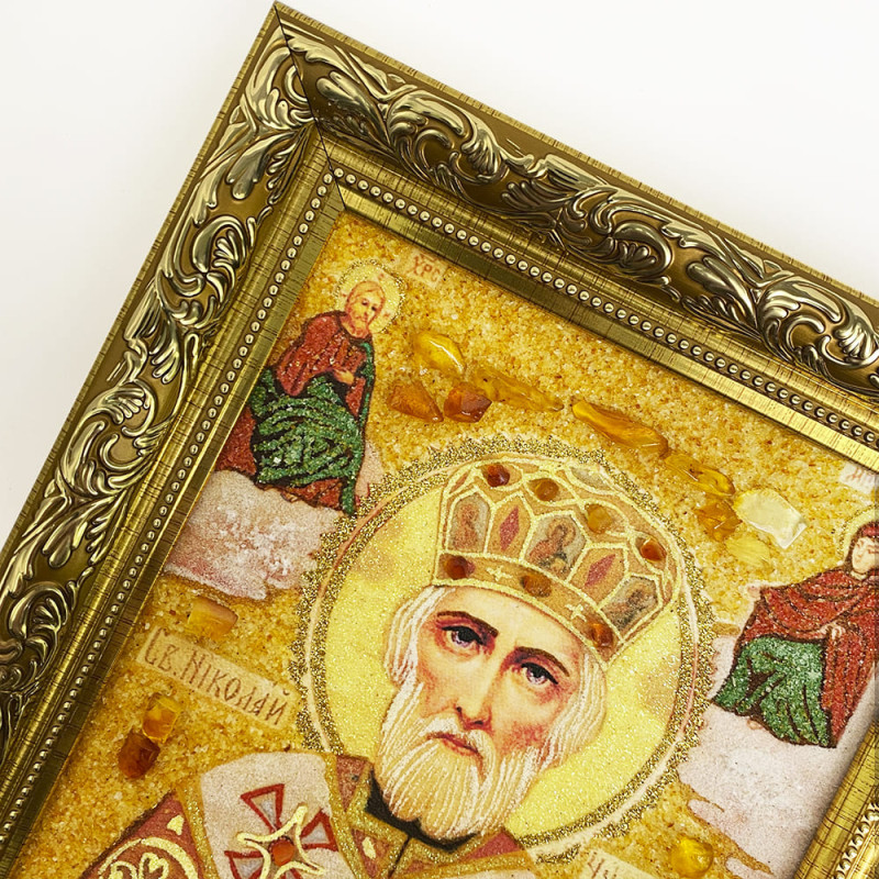 Икона из янтаря "Святитель Николай Чудотворец" 15x20
