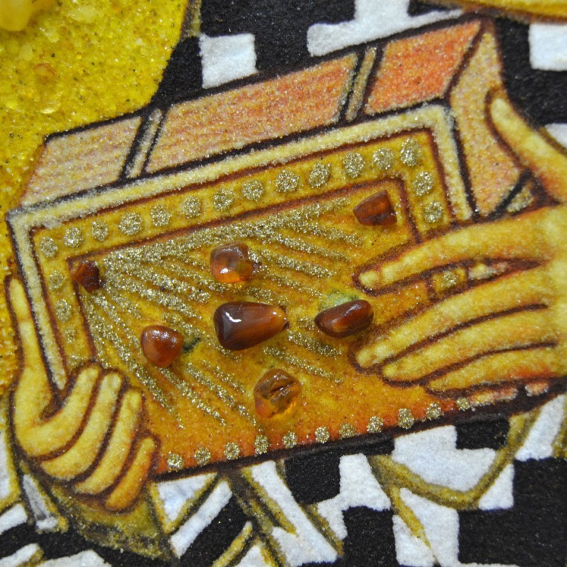 Данная именная икона выполнена профессиональным мастером насыпной и наборной техникой с применением янтарной крошки и драгоценных камней разных размеров. Янтарная икона оформлена в багет на ваш выбор, а также по желанию, икону возможно осуществить под стеклом.