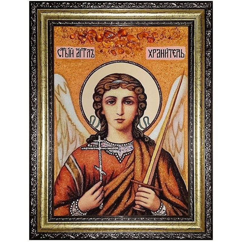 Икона из янтаря Святого Ангела Хранителя 15x20
