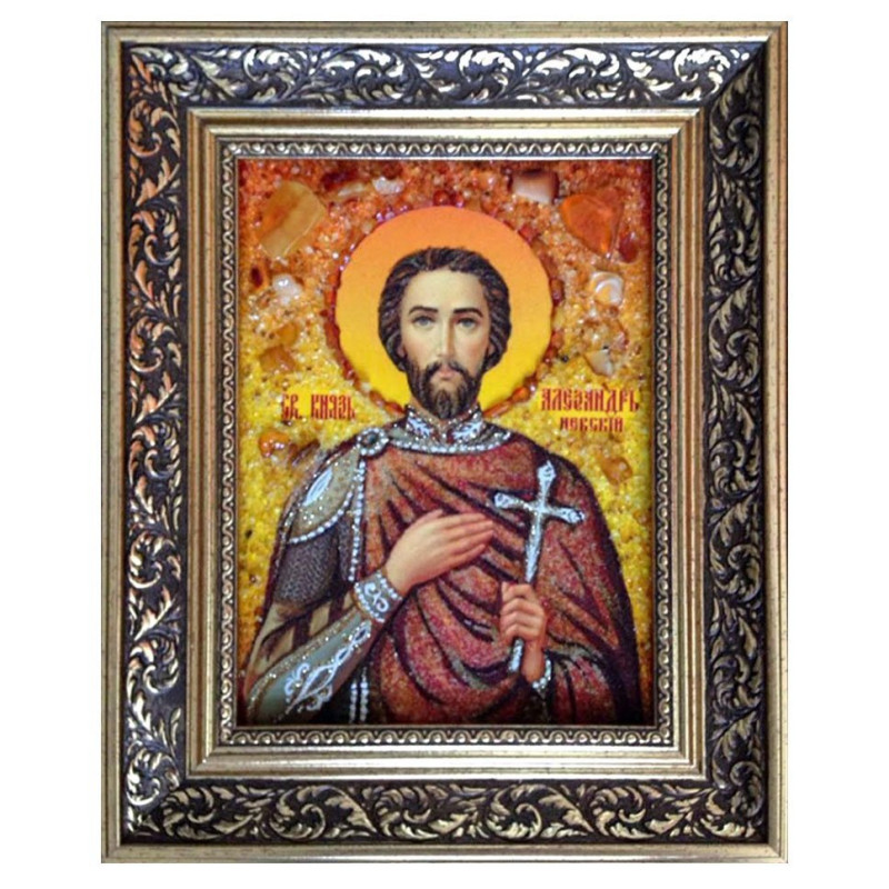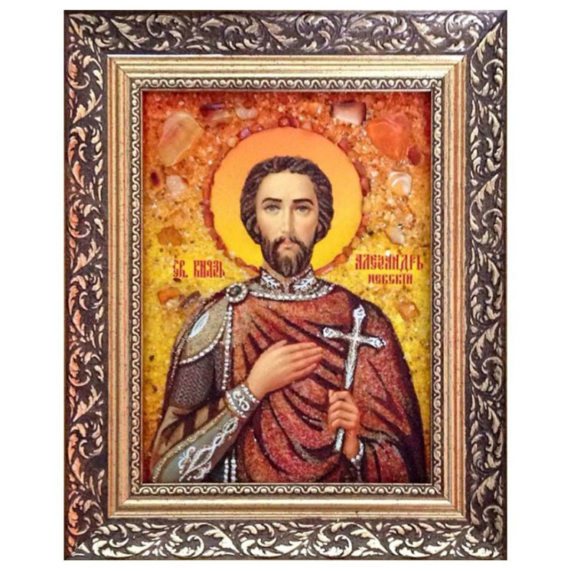 Икона из янтаря "Святой князь Александр Невский" 30x40