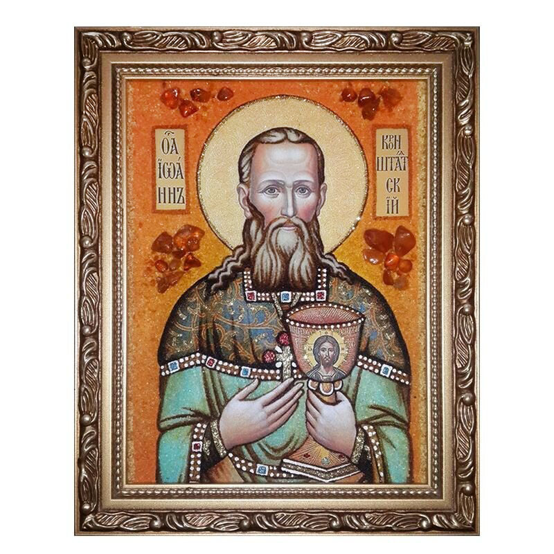 Икона из янтаря "Святой праведный Иоанн Кронштадтский" 15x20