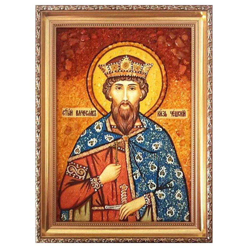 Икона из янтаря "Святой Вячеслав князь Чешский" 60x80