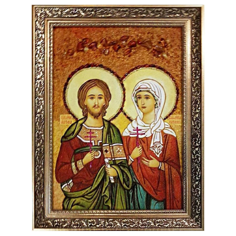 Икона из янтаря "Святые Адриан и Наталия" 20x30