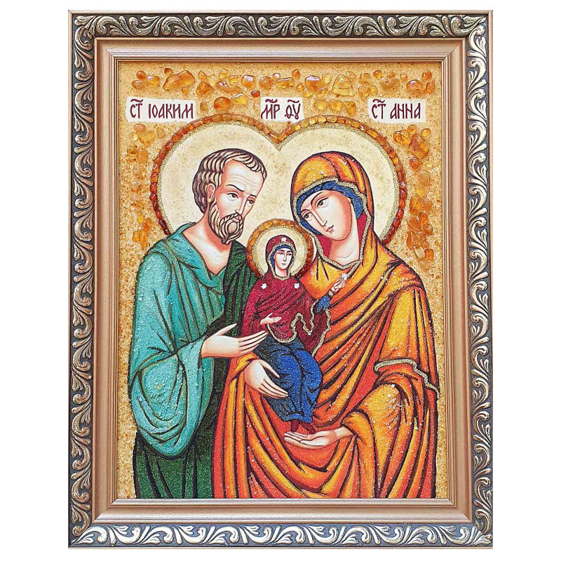 Икона из янтаря "Святые Иоаким и Анна" 15x20