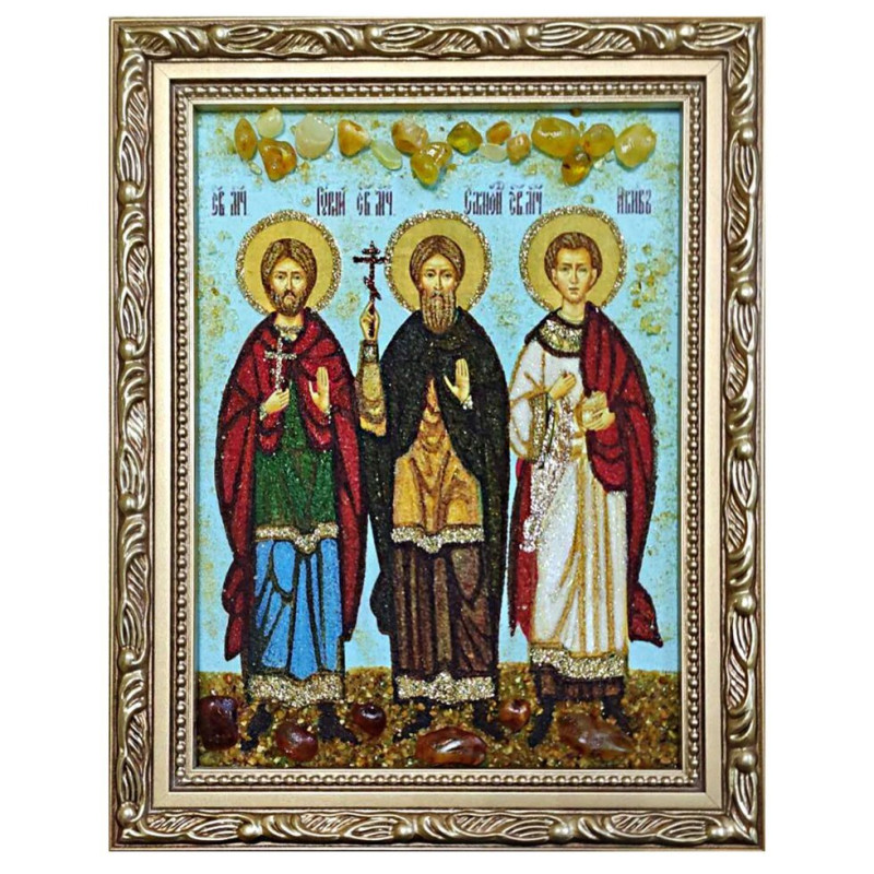 Икона из янтаря "Святые мученики Гурий, Самон и Авив" 60x80