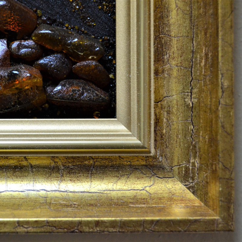 Данная икона выполнена профессиональным мастером насыпной и наборной техникой с применением янтарной крошки и драгоценных камней разных размеров. Янтарная икона оформлена в багет на ваш выбор, а также по желанию, икону возможно осуществить под стеклом.