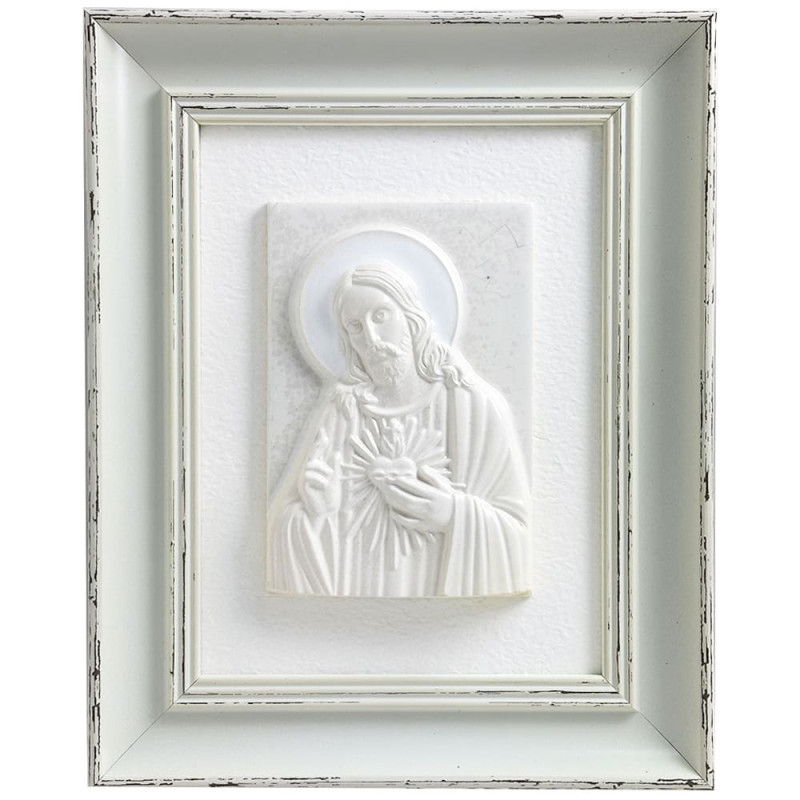 Все эти процессы выполняются мастером вручную. Белый багет, обрамляющий образ, придает изящество и светлое благородство, акцентируя внимание на духовной глубине изображения.