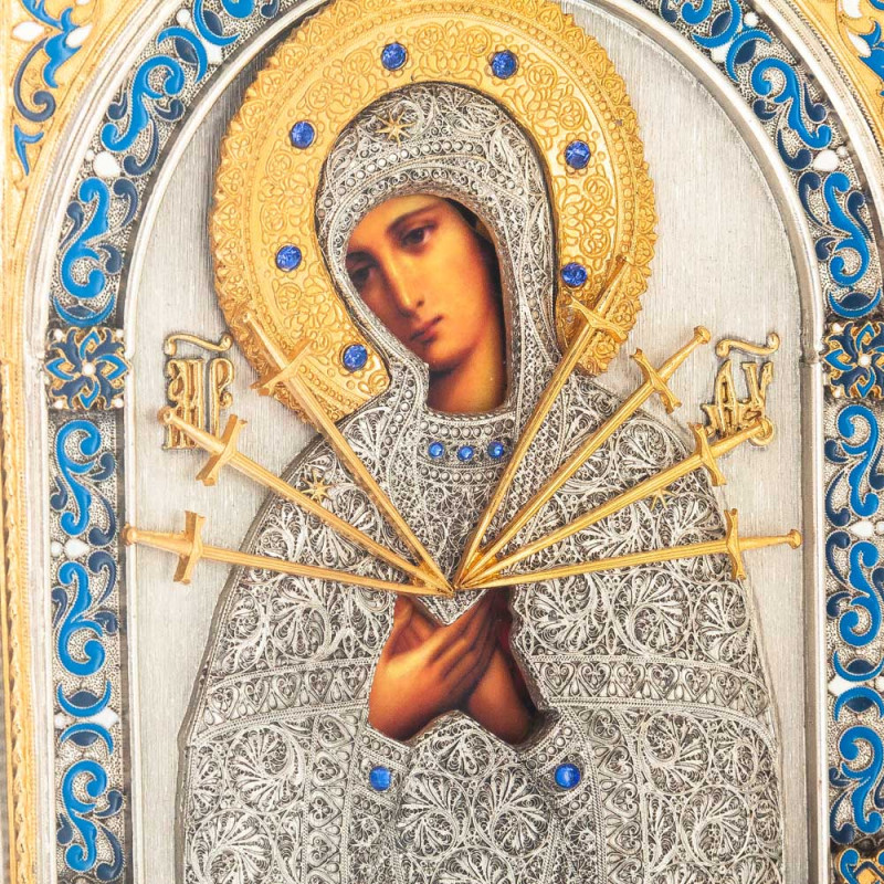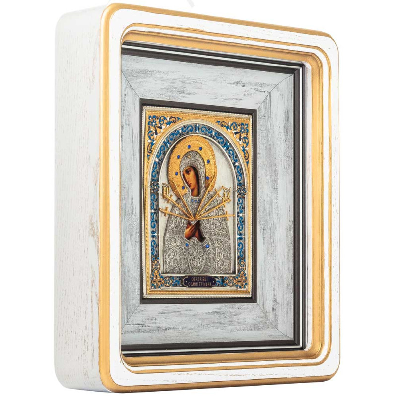 Икона Святой Богородицы Семистрельной станет отличным подарком на день рождения или юбилей.
