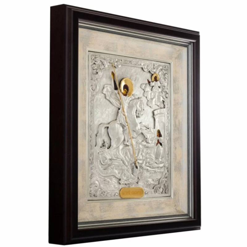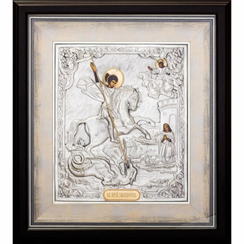 Икона "Святой Георгий Победоносец" серебро с позолотой