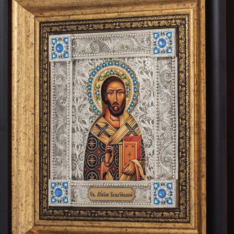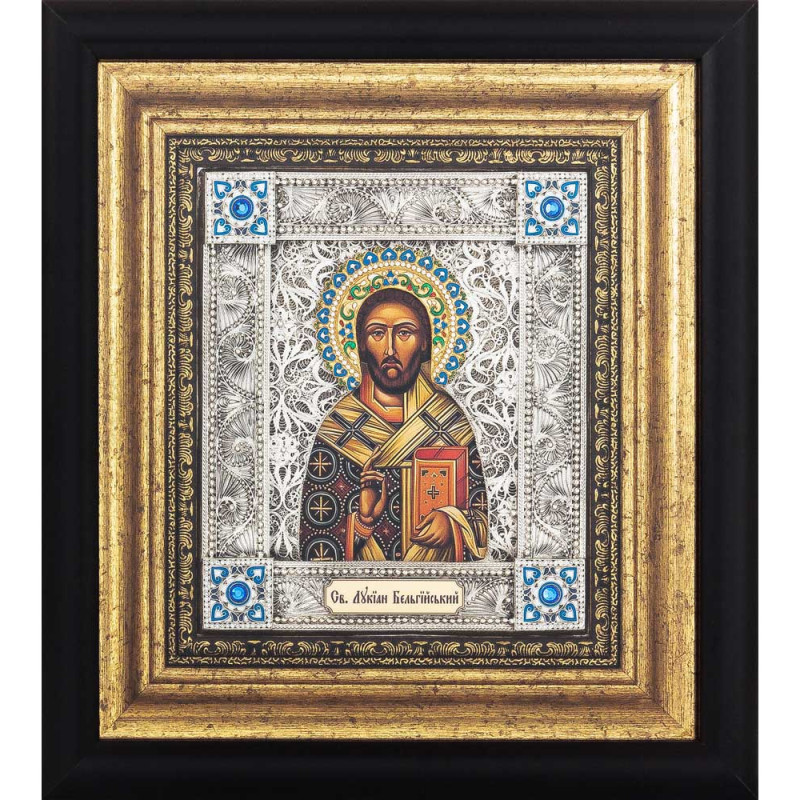 Икона Святой Лукиан Бельгийский посеребренная