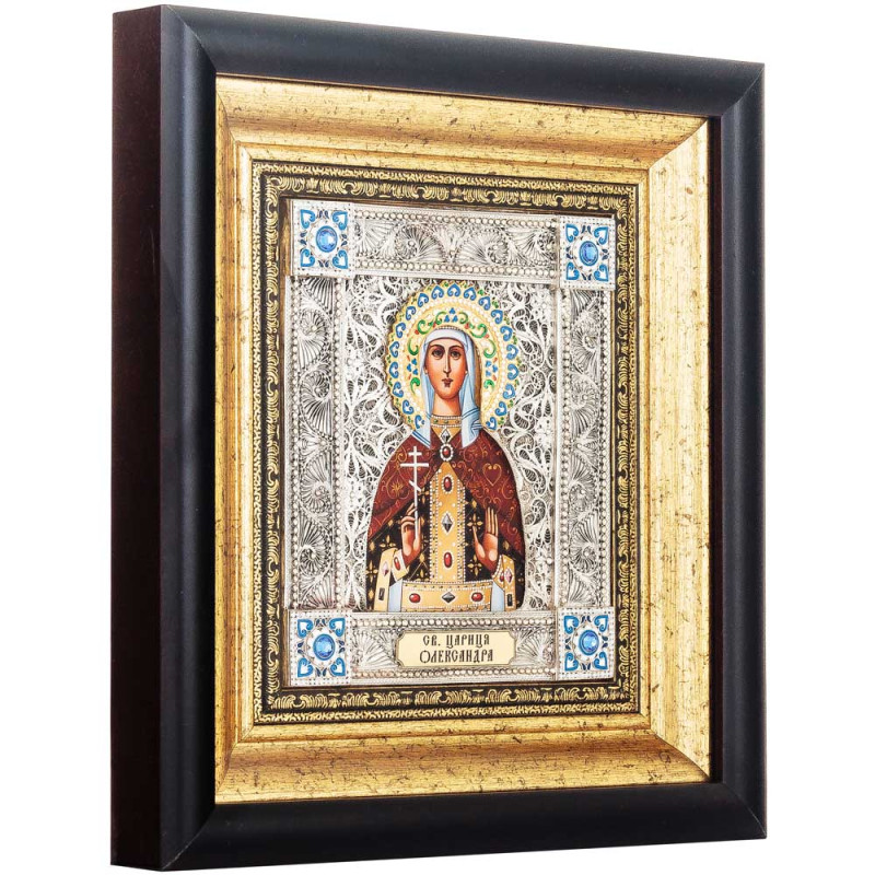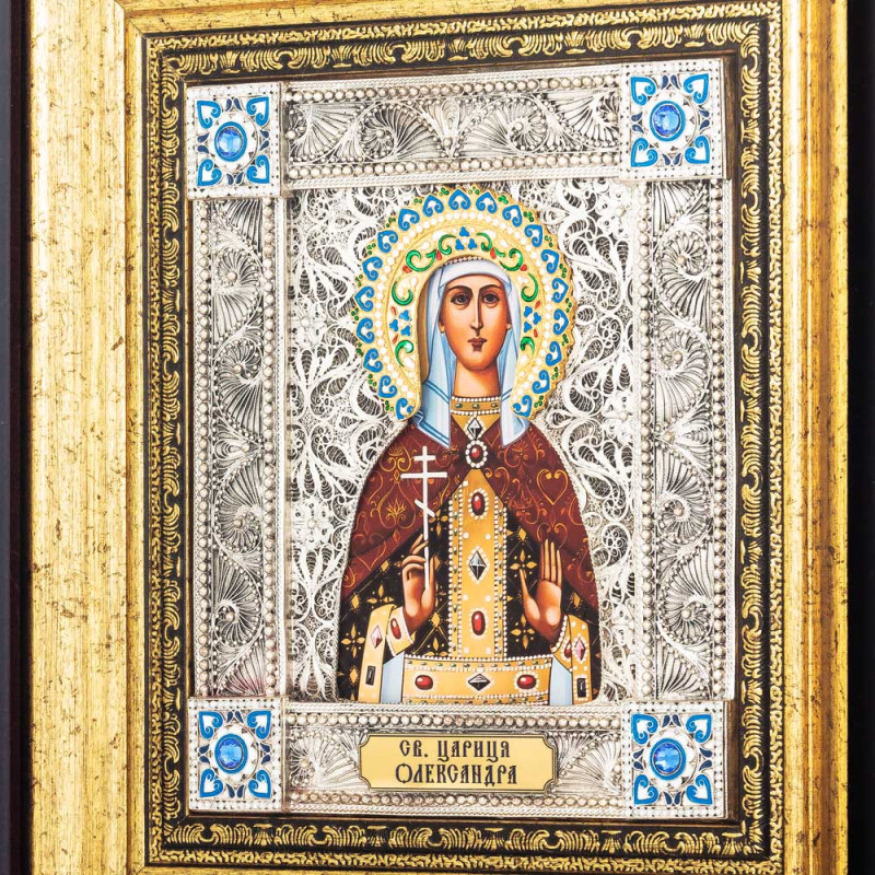 Икона святой мученицы царицы Александры в ювелирном киоте