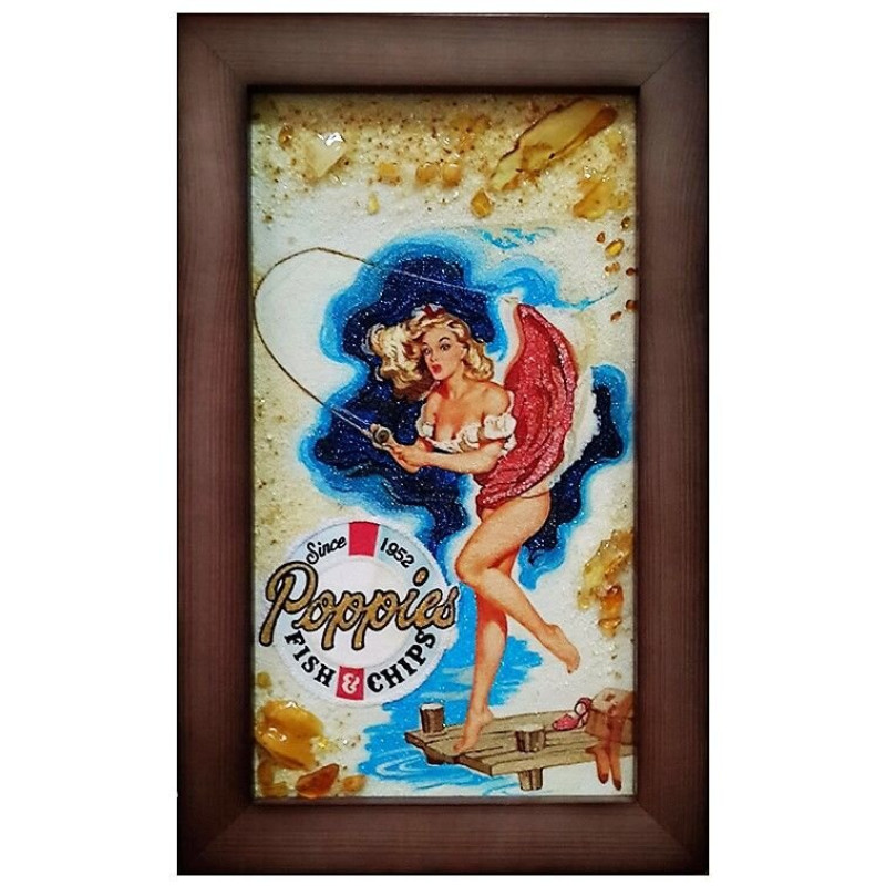 На панно изображена реклама чипсов 50-х годов, она выполнена в ретро стиле. Панно как бы окунает нас в то время, помогая прочувствовать уже ушедшую атмосферу прошлого. Янтарное панно "Ретро реклама" добавить некий стиль интерьеру, глядя на него можно помечтать или вдохновиться. Панно из янтаря можно преподнести в качестве дорогого подарка. С каждым годом ценность такого произведения искусства возрастает в разы.