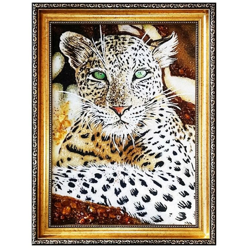 Картина из янтаря "Снежный барс" 60x80