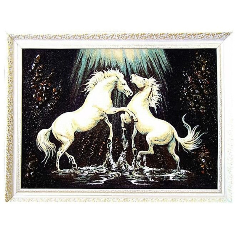 Картина из янтаря "Танец белых коней" 20x30