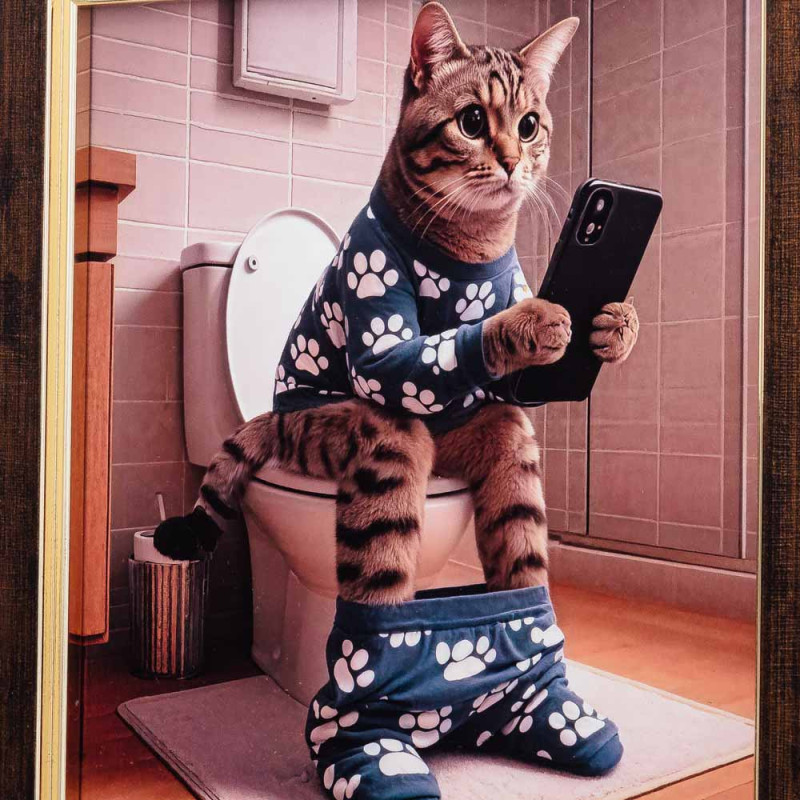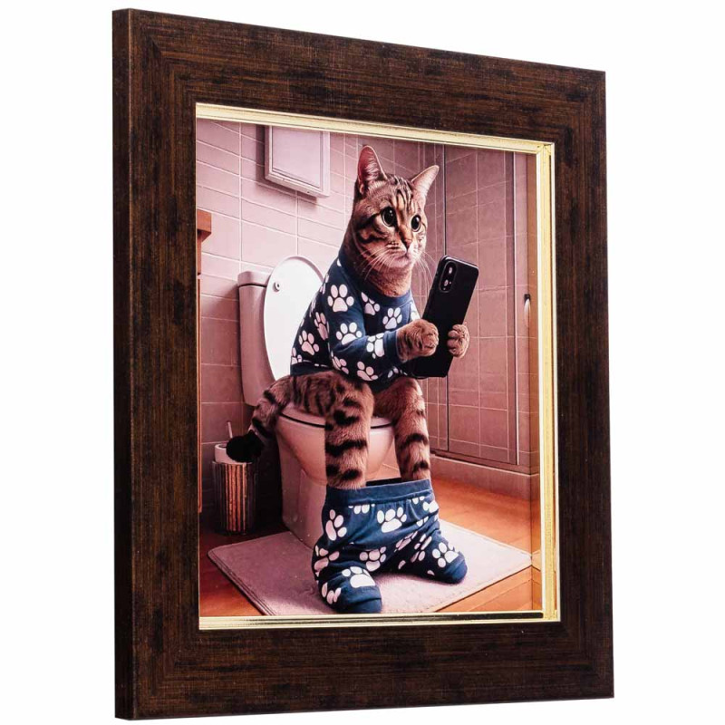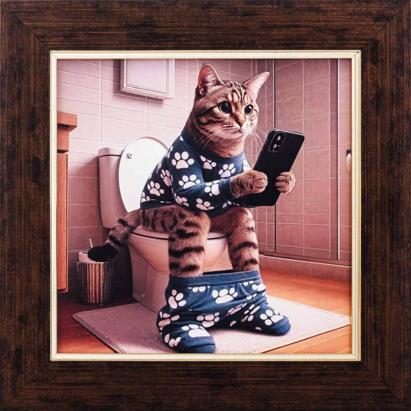 Добавьте юмора и настроения в повседневность с этим весёлым настенным арт-объектом! Оригинальная картина с задорным котом не просто украсит интерьер ванной комнаты, но и станет источником улыбок каждый день.