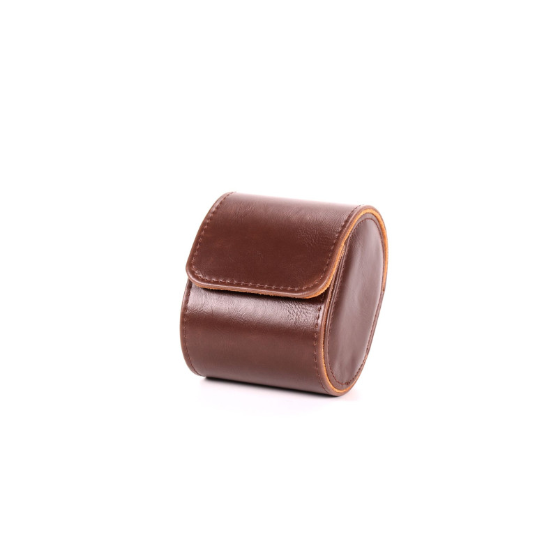Кейс изготовлен из прочной PU кожи коричневого цвета и отделан мягким серым бархатом внутри, что обеспечивает максимальную защиту от царапин и пыли. Размеры кейса позволяют легко поместить его в любую сумку или дорожную косметичку. Классический дизайн и высокое качество исполнения делают этот кейс универсальным подарком для себя или близких. Кейс надежно фиксирует часы внутри, предотвращая их повреждение во время транспортировки.