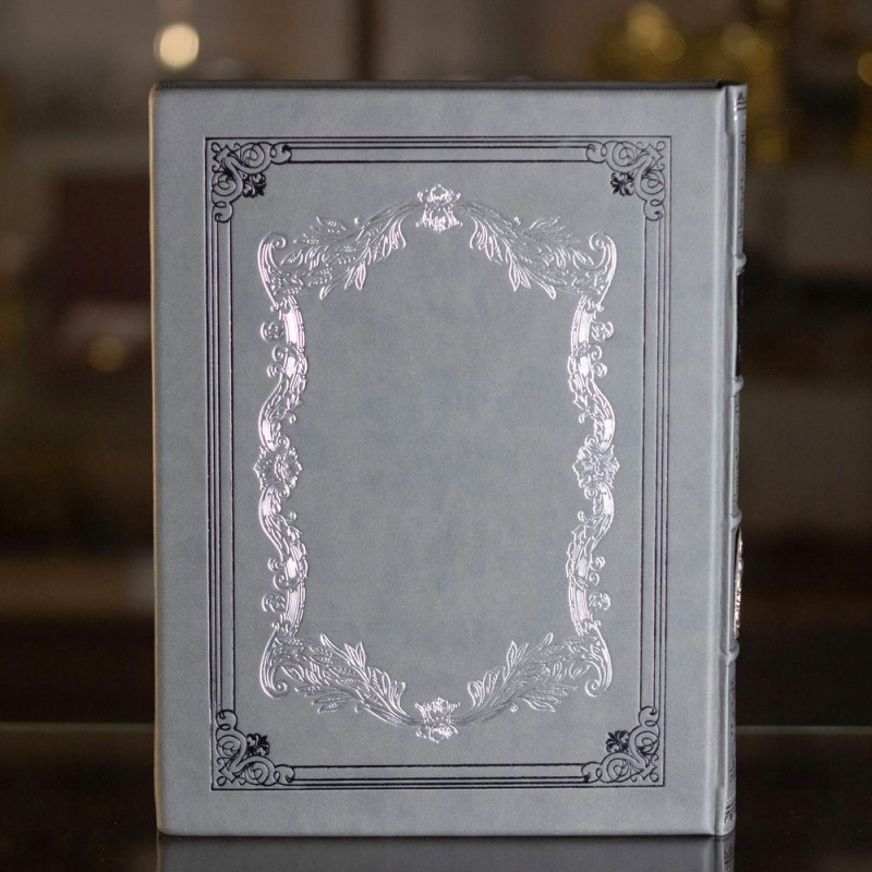 Данная подарочная книга оформлена в переплёт из натуральной высококачественной кожи ручной работы, производства итальянской кожаной фабрики «Benericetti». Переплёт украшен тиснением серебром, мрамированным обрезом и накладками из меди которые покрыты серебром.