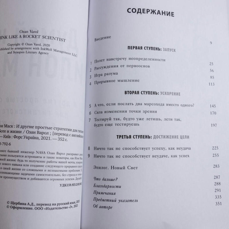В своей дебютной книге "Думай как Илон Маск" бывший инженер NASA Озан Варол раскрывает девять простых стратегий, которыми пользуются астронавты и такие новаторы как Илон Маск. Используйте и вы их в своей жизни: будь то посадка на рабочее место вашей мечты, ускорение вашего бизнеса, изучение нового навыка или создание следующего прорывного продукта. Все мы сталкиваемся в своей жизни со сложными и незнакомыми проблемами. Те, кто может справиться с возникающими задачами самостоятельно, без стресса и точно в срок - пользуются огромным преимуществом и добиваются огромных успехов.