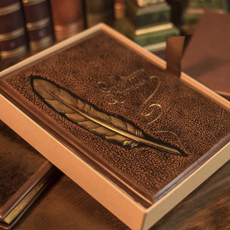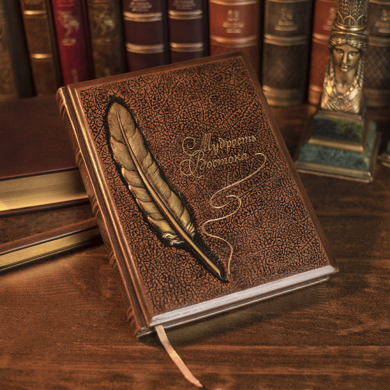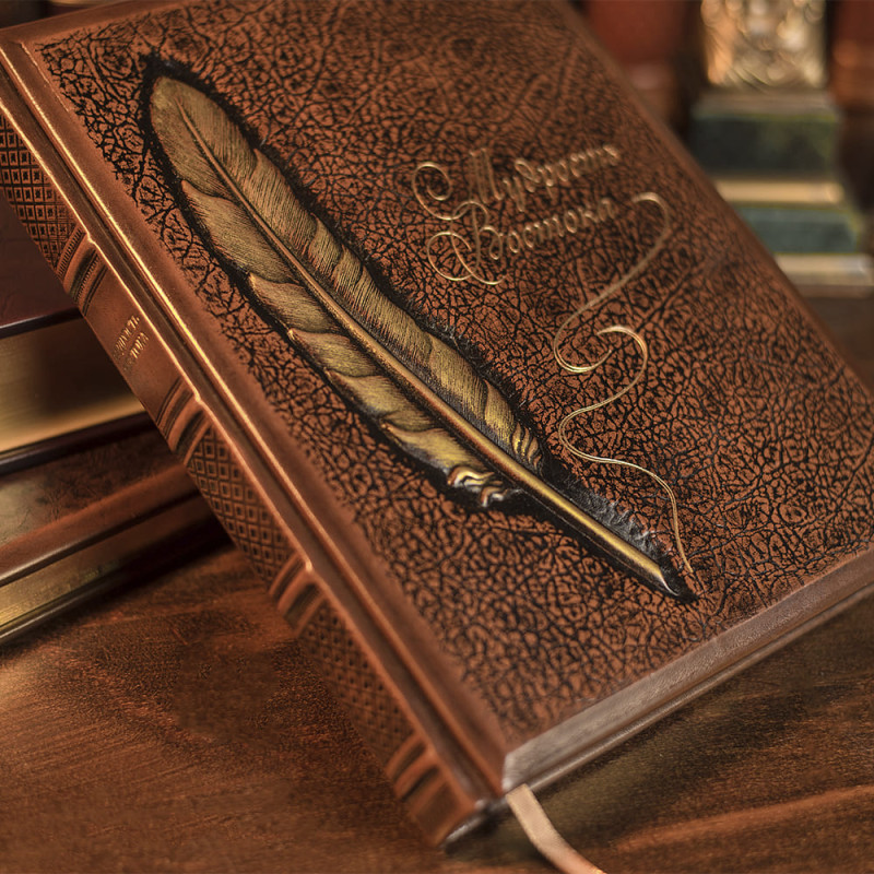 Данная подарочная книга оформлена в кожаный переплет ручной работы. Декор по книге выполнен по технологии конгревного тиснения с нанесением позолоты, тонировки и лакового покрытия. Книга имеет золотой срез торцов блока.