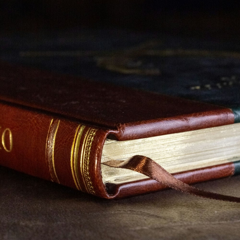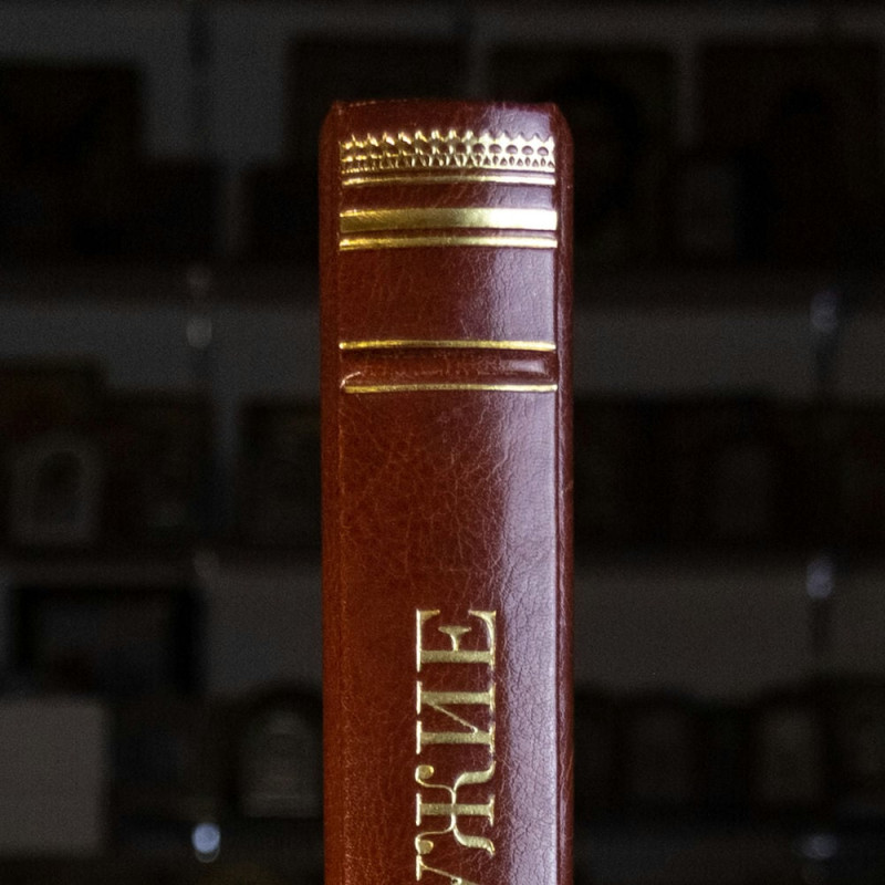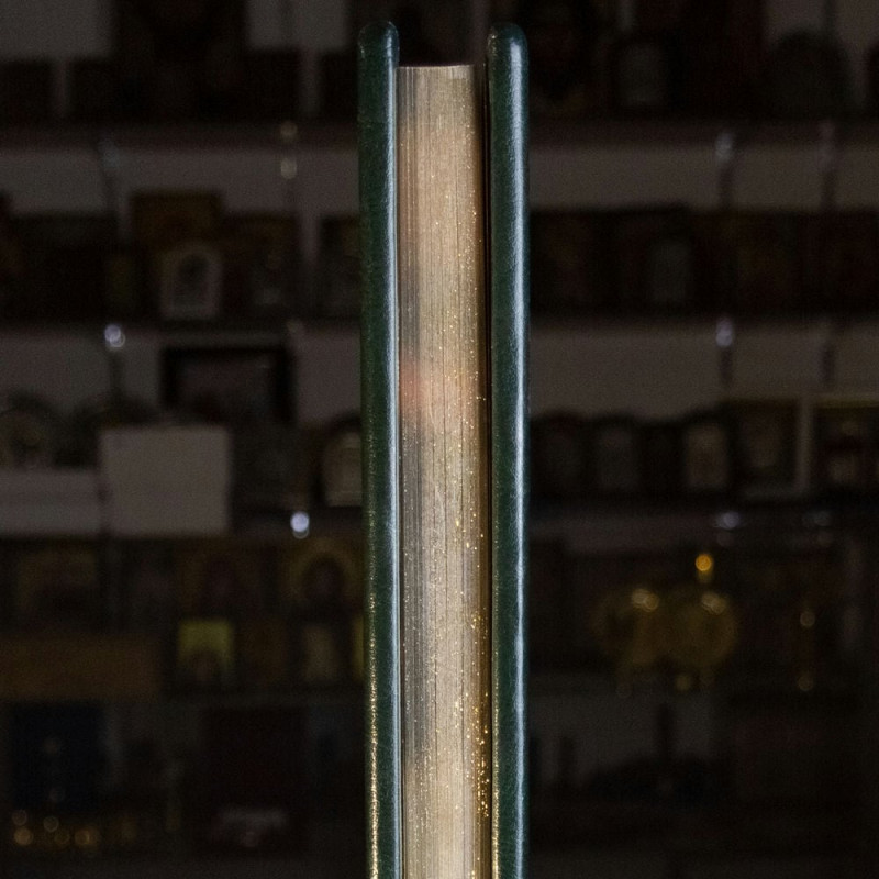 - Материал обложки:натуральная кожа, тиснение золотом, обрез с золочением