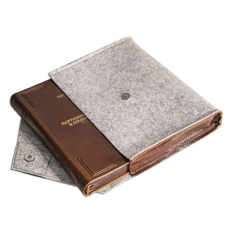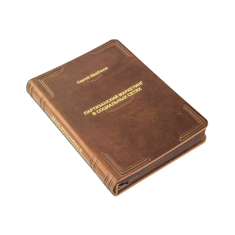 Цельно-кожаный полужесткий переплет "Брадель", ручной работы, изготовлен из натуральной кожи "POSITANO Vegetale" производства итальянской кожевенной фабрики. Обложка книги оформлена комбинацией глубокого блинтового и рельефного золотого тиснения, с использованием фольги "Luxor 240". Обрез блока вручную шлифован и окрашен.