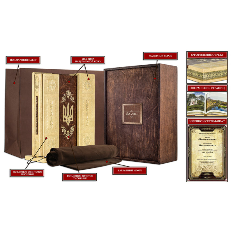 Этот прекрасный фотоальбом станет роскошным подарком гостям и жителям Украины. Со страниц презентабельного издания перед нами предстает неповторимый образ страны, богатой своей древней историей и уникальными достопримечательностями. Издание вмещает в себя 313 профессиональных фотографий, которые радуют глаз эстета чарующими ландшафтами, вычурной архитектурой, разнообразием культурных памяток, которыми богата украинская земля. Фотоальбом рассчитан на широкий круг любителей искусства, в частности, искусства Украины.