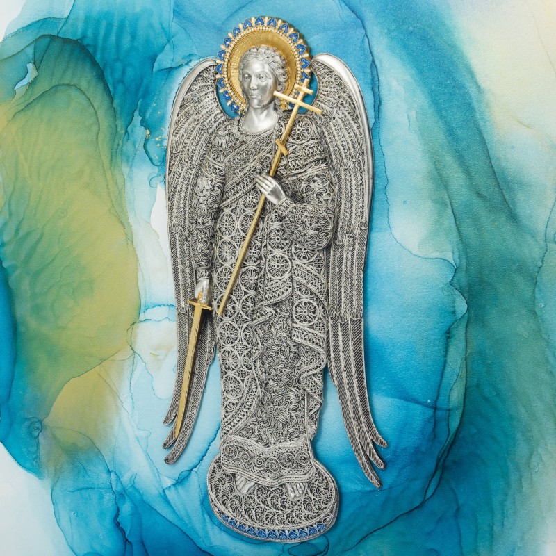 Созданный с любовью и искусным мастерством в Украине, этот коллаж сочетает в себе красоту и духовность. Медь - символ долговечности и благополучия. Серебро - олицетворение чистоты и защиты. Золото - символ роскоши и духовного просветления. Эмали - добавляют яркие цветовые акценты и неповторимую эстетику. Багет - изящная рамка, которая подчеркнет красоту коллажа и станет завершающим штрихом в его оформлении.