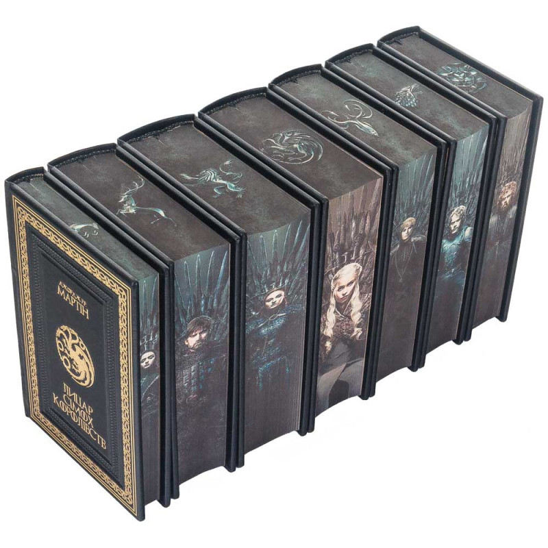 Многотомное собрание является эталоном современного переплётного искусства, созданным для истинных ценителей саги «Песнь льда и пламени». Каждый том — драгоценный артефакт, погружающий в атмосферу средневекового Вестероса ещё до прочтения первой страницы.