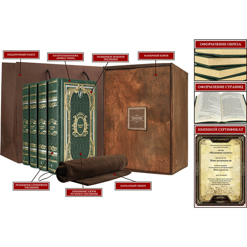 - Материал обложки:натуральная кожа, тиснение золотом, серебром, обрез с золочение