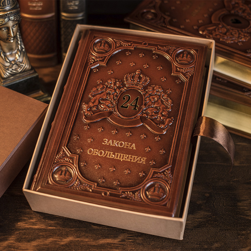 Роберт Грин "24 Закона обольщения" - книга в кожаном переплете ручной работы послужит отличным подарком. Обольщение – это один из мощных инструментов бизнес-стратегий, который помогает завоевывать доверие и переманивать врагов на свою сторону. Узнайте механизм действия обаяния и шарма. Легко и непринужденно Вы добьетесь успеха в работе и личной жизни, следуя законам обольщения Роберта Грина.