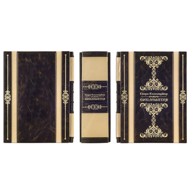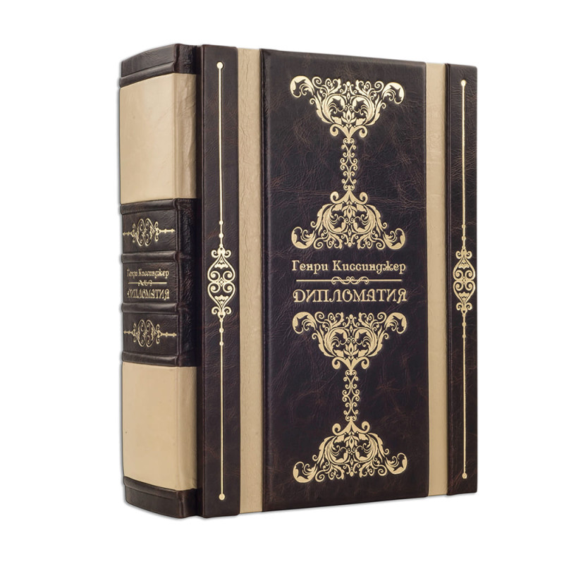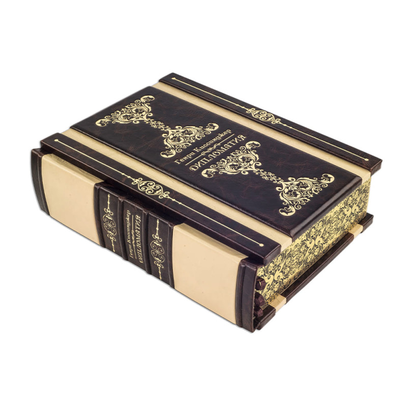 Кожаная книга "Дипломатия" Г. Киссинджер в деревянном футляре